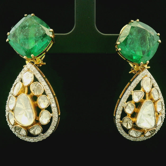 Emerald Green Teardrop Statement Earrings with Gold Finish